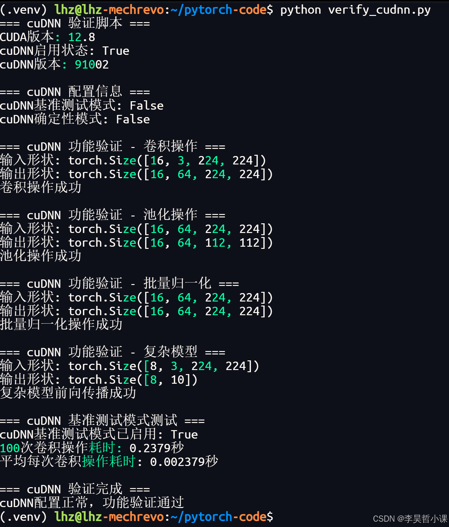 1. 核心目标:验证PyTorch环境的整体配置,包括PyTorch版本、CUDA支持和cuDNN配置