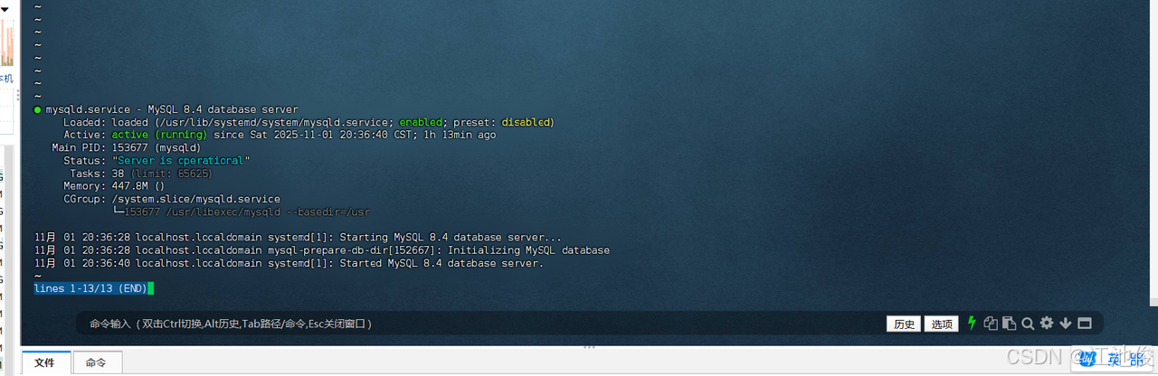# 查看一个服务的详细状态和最近日志(以MySQL为例)