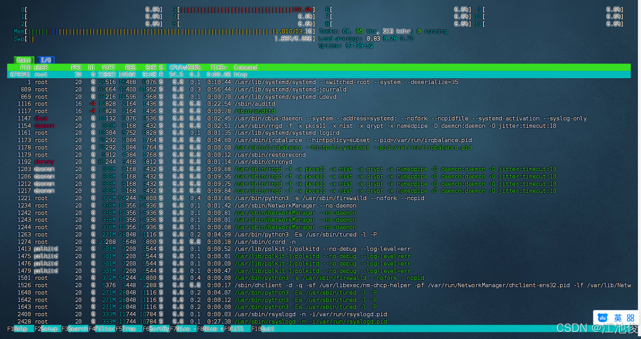 打开htop,你可以清晰地看到CPU各核心的负载、内存和交换分区的实时消耗,以及所有进程的"生命体征"。而nethogs则能立刻告诉你,究竟是哪个"内鬼"进程在大量占用网络带宽。