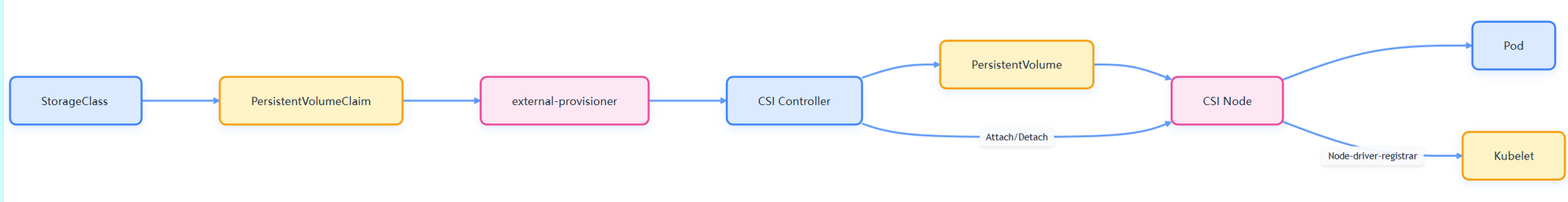 CSI(Container Storage Interface)是一种标准化的存储插件接口,用于将外部存储系统无缝集成到 Kubernetes 等容器编排平台中。CSI 通过定义一组标准的 gRPC 接口(如创建卷、挂载卷、卸载卷等),使存储供应商可以独立开发插件,而无需修改 Kubernetes 核心代码。CSI 驱动通常由两部分组成:运行在控制平面的 CSI Controller(负责卷的创建、删除、附加等管理操作)和运行在每个节点上的 CSI Node(负责卷的挂载和卸载)。通过 CSI,Kubernetes 可以动态地挂载和卸载外部存储卷,满足容器应用对持久化存储的需求。CSI 的引入极大地简化了存储系统的集成和管理,推动了容器存储生态的发展。