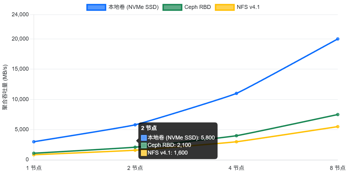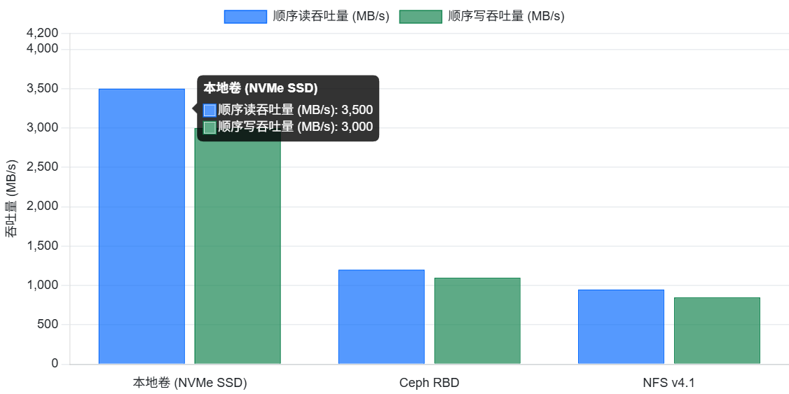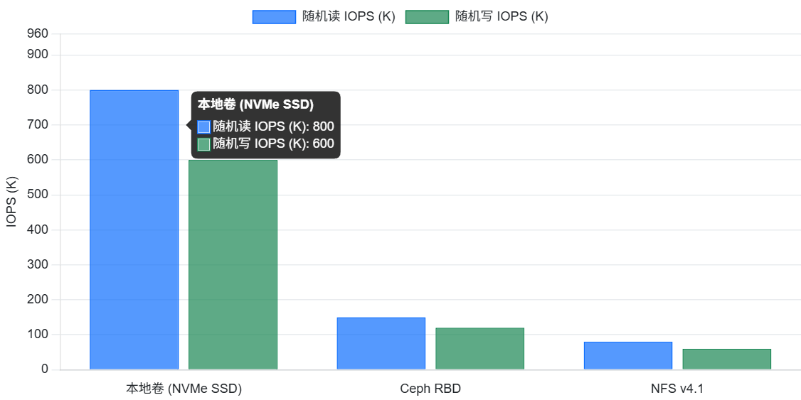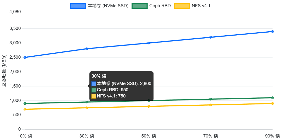 - 存储介质:使用高性能存储介质(如 NVMe SSD)可以显著提升本地卷和远程存储缓存层的性能。相比传统 HDD,SSD 能提供更低的延迟和更高的 IOPS,从而提高整体吞吐。如果预算允许,建议将关键存储(如数据库存储、Ceph WAL/DB)部署在 SSD 上。