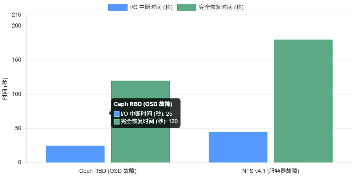 - 故障恢复测试:模拟存储节点故障或网络中断,测试存储系统的故障切换和数据恢复能力。例如,对于 Ceph RBD,可以测试 OSD 节点宕机后的 I/O 暂停和恢复时间。