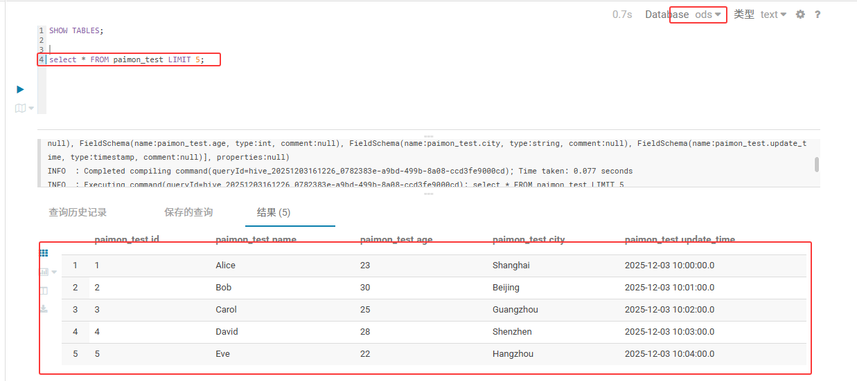 (5,'Eve',22,'Hangzhou',TIMESTAMP '2025-12-03 10:04:00'),