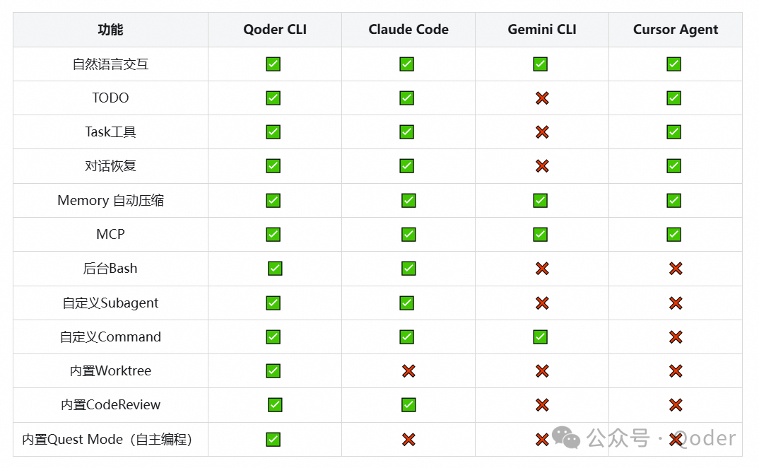 Q:与 Claude Code、Codex、Gemini CLI,有什么差异和亮点?