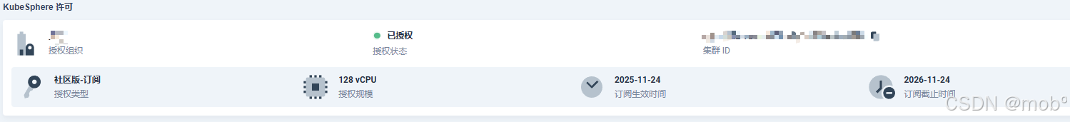 登录 KubeSphere Web 控制台,点击组件坞 > 平台设置 > 许可证,进入许可证页面,获取当前集群的集群 ID: