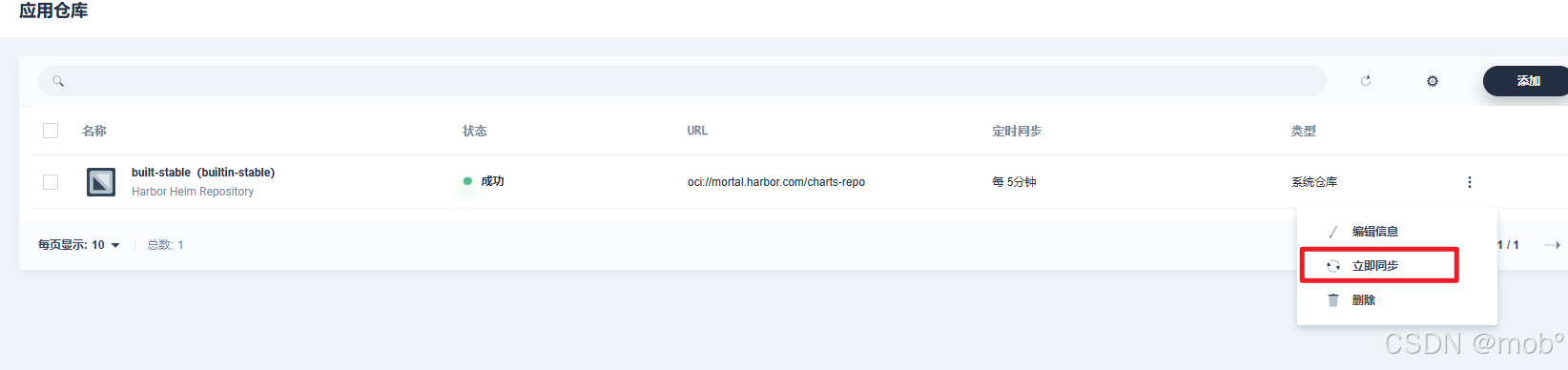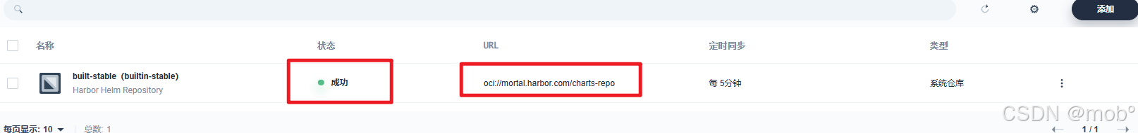 配置完之后,添加 Harbor 应用仓库便可以验证通过了,并且能成功同步。