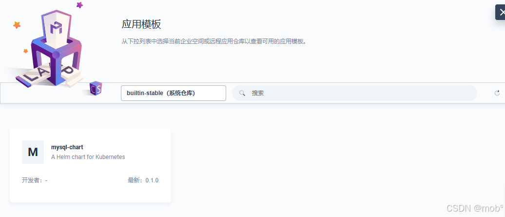 选择 mysql-chart 安装,安装之后,集群中就可以使用该应用了。