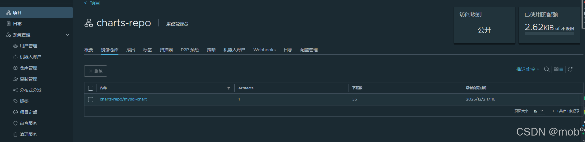 - Harbor 2.8 及以后版本(包括 v2.11)在创建 Charts 仓库时,无需单独创建 "Helm Charts 仓库",而是与 Docker 镜像仓库统一合并为OCI 制品仓库,即不再区分 "镜像仓