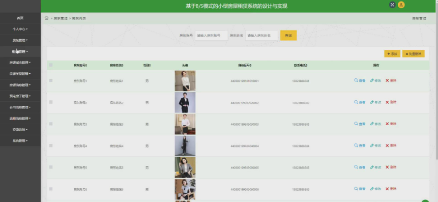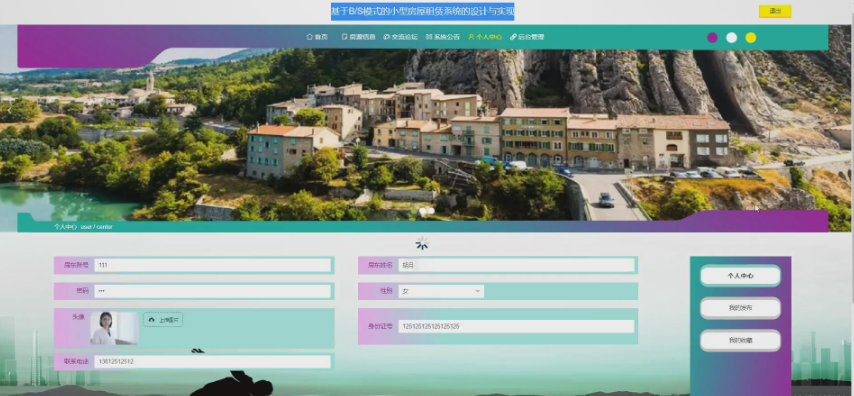 系统阐述的是使用小型房屋租赁系统的设计与实现,对于pythona、B/S结构、MySql进行了较为深入的学习与应用。主要针对系统的设计,描述,实现和分析与测试方面来表明开发的过程。开发中使用了vue技术和MySql数据库技术搭建系统的整体架构。利用这些技术结合实际需求开发了具有个人中心、房东管理、租户管理、房源城市管理、房源类型管理、房源信息管理、预定房子管理、合同信息管理、退租信息管理、交流论坛、系统管理等功能的系统,