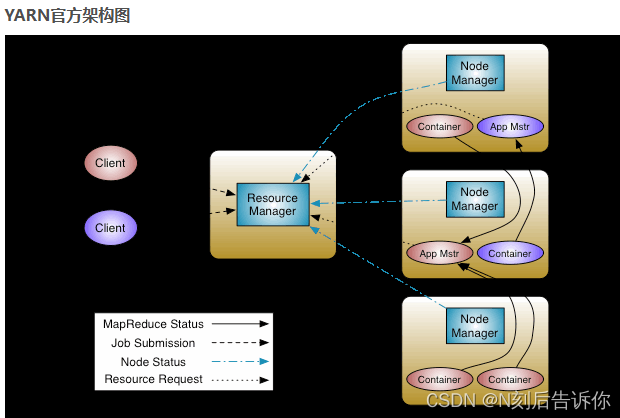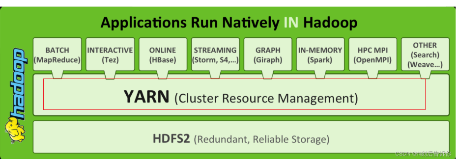 - Hadoop YARN(集群资源管理,任务调度框架Yet Another Resource Negotiator):解决资源任务调度
