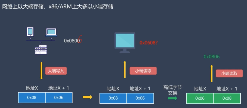 而short x=0x1122;则是按照0x22 0x11进入内存,所以大小端完全不同
