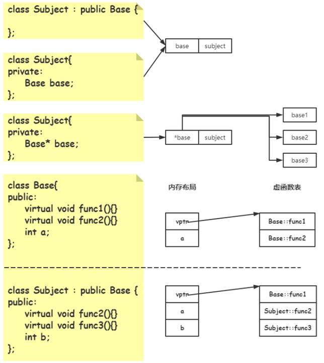 代码结构:基类中有骨架流程接口;所有子流程对子类开放并且是虚函数;多态使用方式。