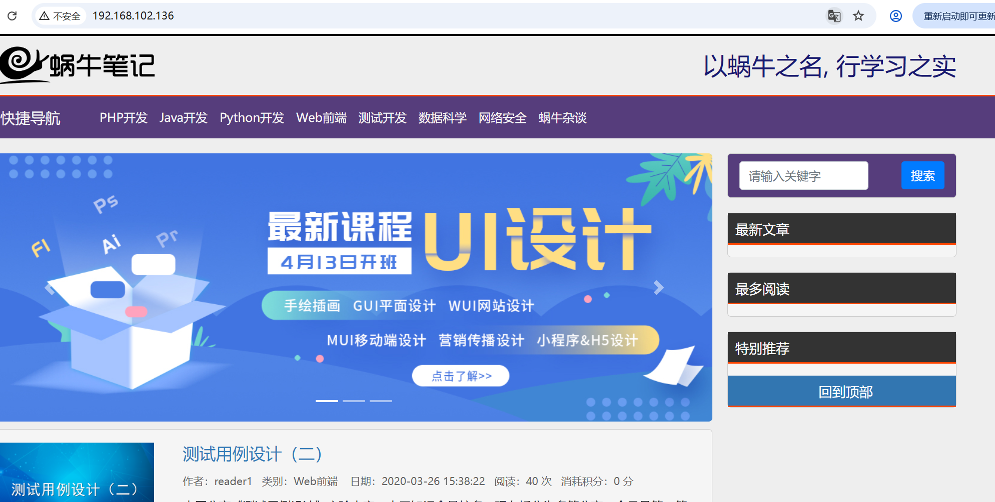 页面可以正常访问,但是右侧边栏没有成功加载数据,并且分类导航栏的链接不可用,会出现404NotFound的页面错误。