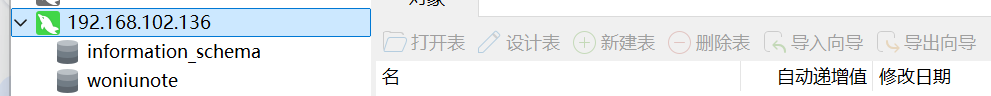 完成上述操作后,重启MySQL服务器,使用Navicat进行远程连接,此时,将只会出现woniunote数据库,用户无法查看其他数据库,按照正常流程,运行woniunote的SQL文件完成数据库的创建。记得让防火墙允许3306端口访问。