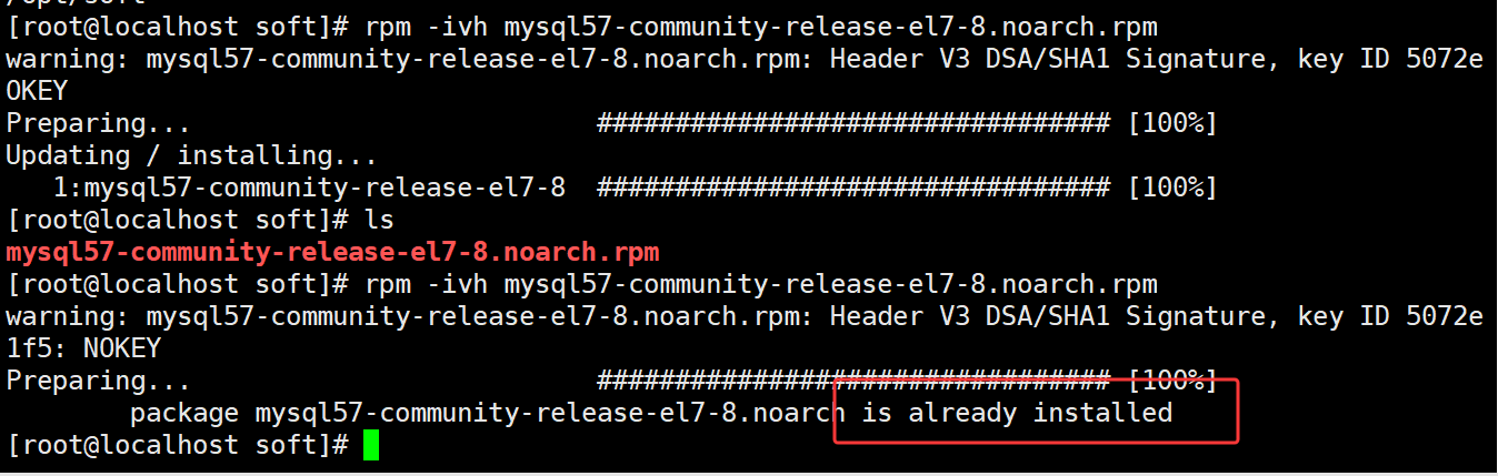 rpm -ivh mysql57-community-release-el7-8.noarch.rpm