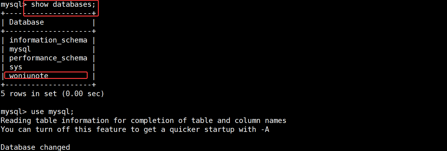 mysql> create database woniunote character set utf8 collate utf8_general_ci;
