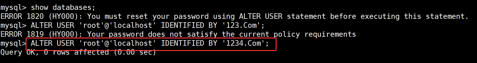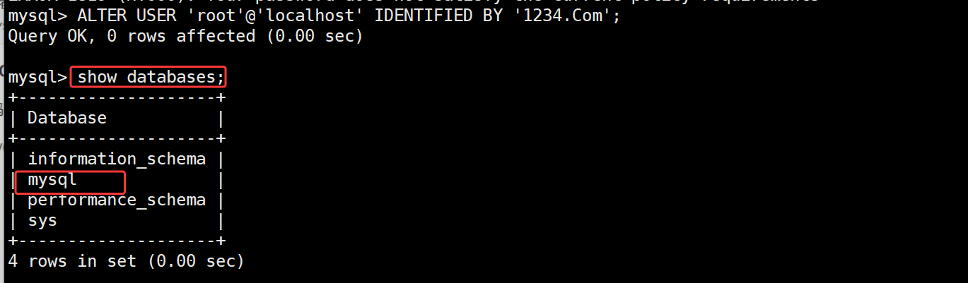 mysql>ALTER USER 'root'@'localhost' IDENTIFIED BY '1234.Com';