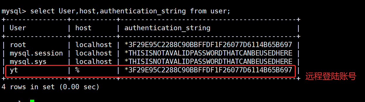 # 创建用户 yt@localhost %表示支持远程连接,密码为1234.Com
