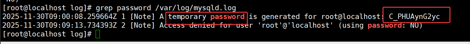 2025-11-30T09:00:08.259664Z 1 [Note] A temporary password is generated for root@localhost: C_PHUAynG2yc