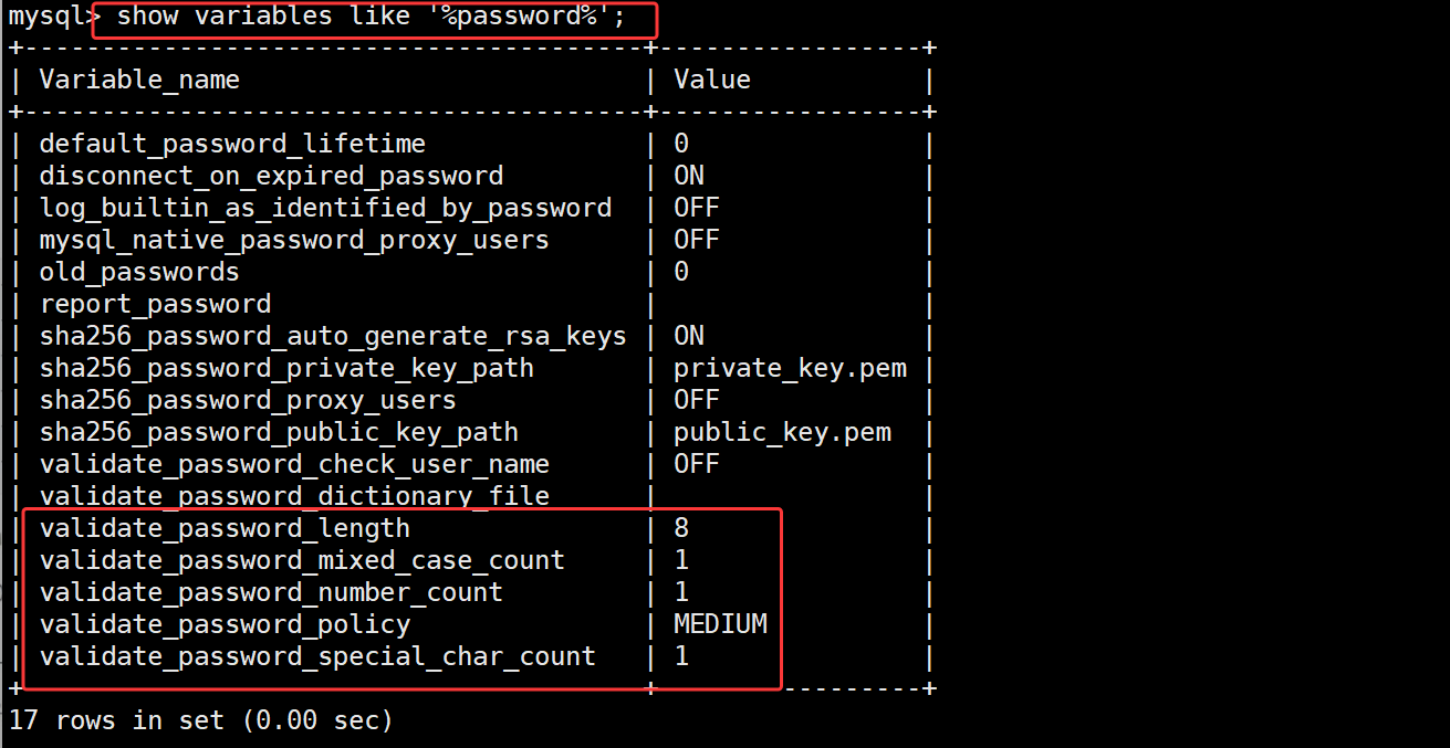validate_password_policy:密码策略,默认为MEDIUM策略