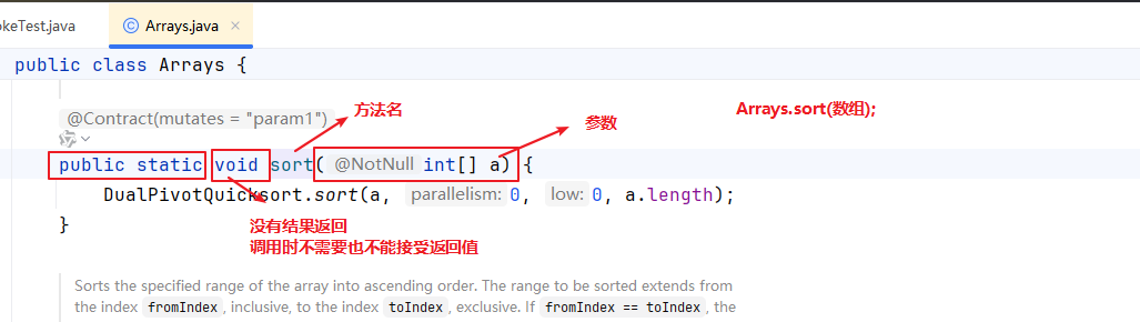 // String str = Arrays.sort(arr);//错误,因为Arrays.sort()方法没有结果返回,返回值类型是void,就不能接受返回值