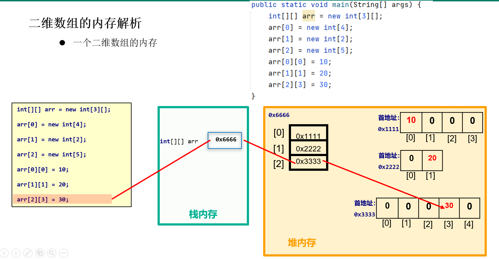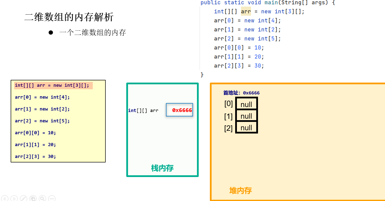 1、静态初始化:在声明数组时,在{}中直接把元素的值、个数都确定了。