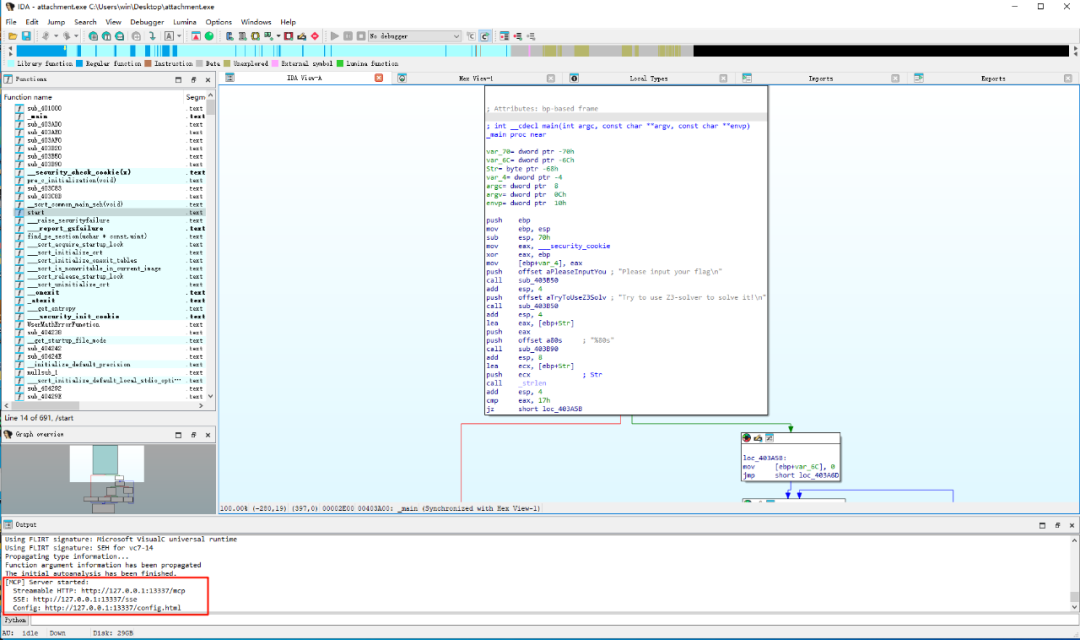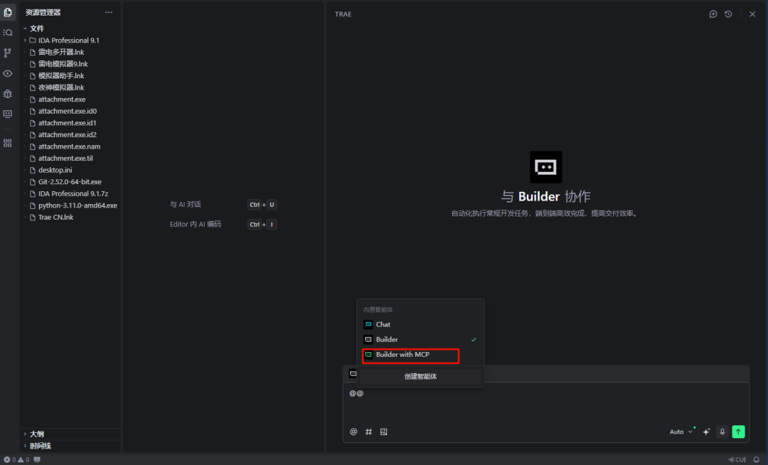 然后我们重新打开ida就可以看到mcp了,要先打开它再使用trea进行分析