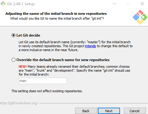 决定初始化新项目(仓库)的主干名字,第一个选项就是使用默认的名字