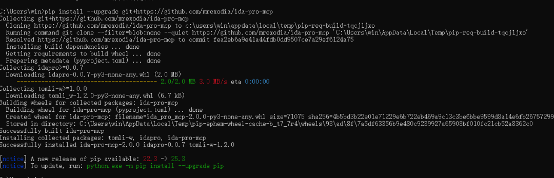 pip install --upgrade git+https://github.com/mrexodia/ida-pro-mcp