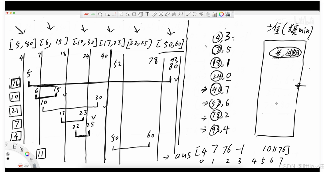 2.先建立一个按照区间大小的排序的小根堆,并且带有其过期的位置。