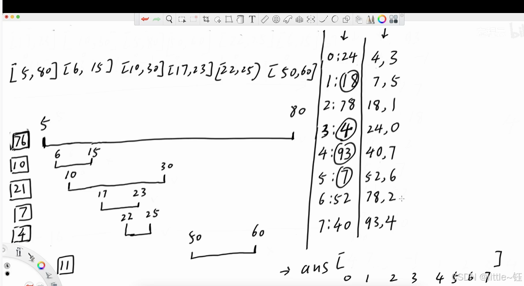 1.先将查询的数按照大小排序,再将区间按照左边界的大小排序
