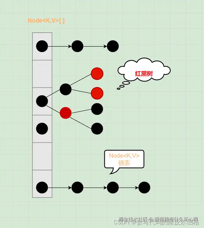 知识点: DEFAULT_LOAD_FACTOR:负载因子,默认值0.75,通过大量计算得出的性能最高的常数。 TREEIFY_THRESHOLD:阈值,用于判断链表转红黑树的门槛。 hash ^ (h >>> 16) :扰动函数,只获取低16位值,让hash值均匀散列。 拉链法:从hash冲突位置起,依次向后遍历,寻找最近的空位置,进行插入。