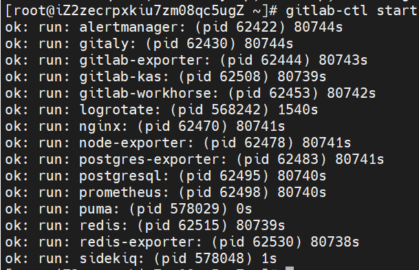 启动所有 gitlab 组件