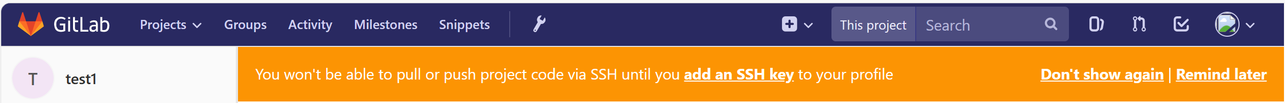 gitlab上有这个提示 是因为SH 连接在代码拉取(pull)和推送(push)时具有一些优势,比如不需要每次都输入用户名和密码(配置好 SSH 密钥后可实现无密码认证)、传输效率和安全性也较高。GitLab 提示你添加 SSH 密钥到个人资料,是为了让你可以选择使用更便捷的 SSH 方式进行代码的拉取和推送操作;如果你暂时不想配置,也可以继续使用 HTTP 方式,只是可能需要频繁输入认证信息。
