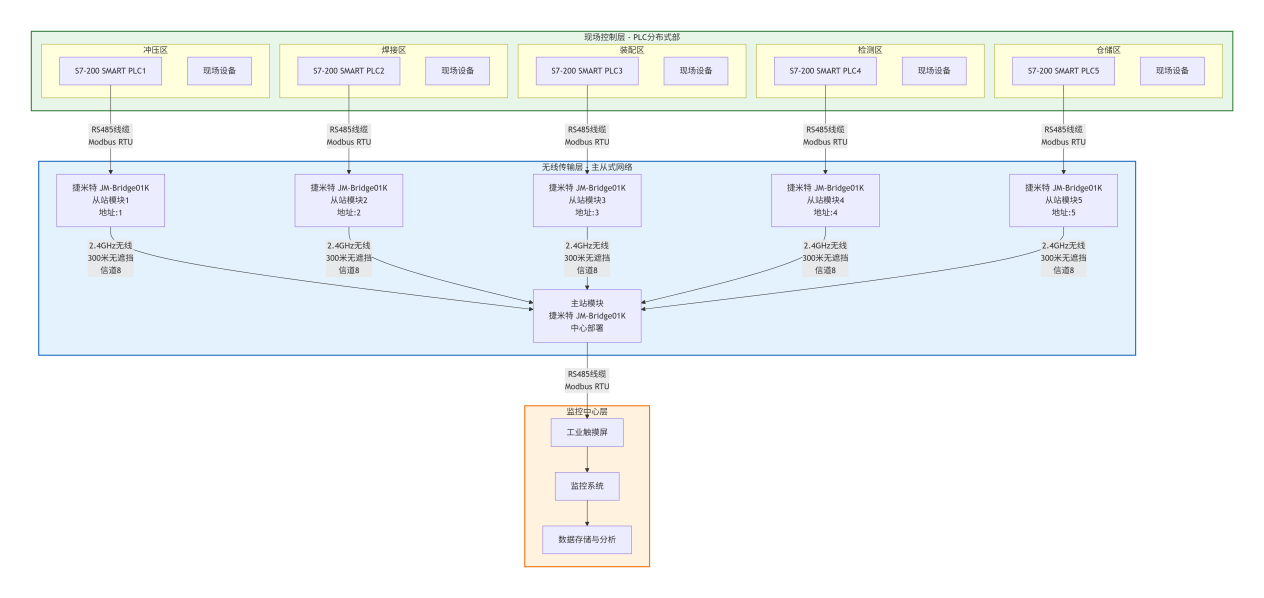 跨区域设备联动:适用于厂房内不同区域设备的数据互通与集中控制,无需复杂布线即可实现协同作业。