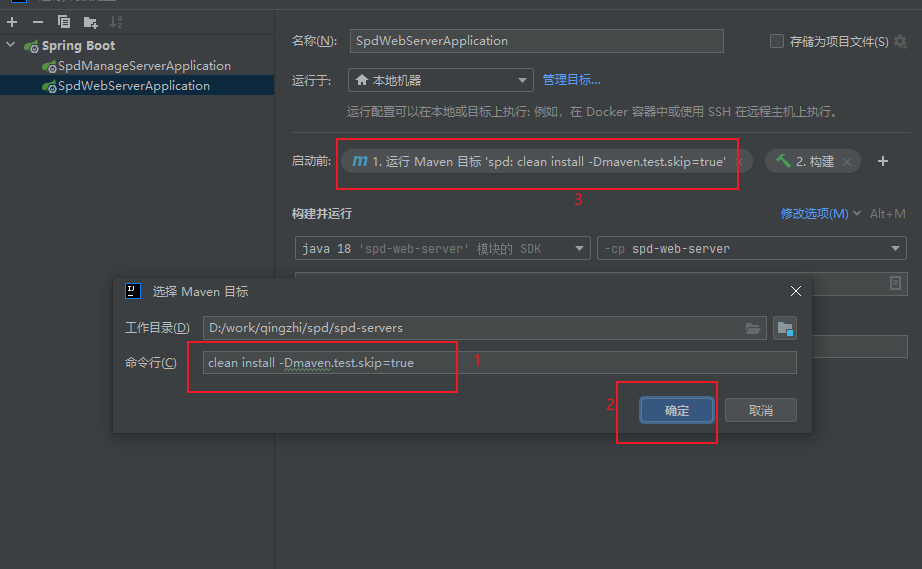 clean install -Dmaven.test.skip=true→ 点击 确定 按钮注意:这里默认的顺序可能不是我们想要的,可以选择后拖动调整顺序