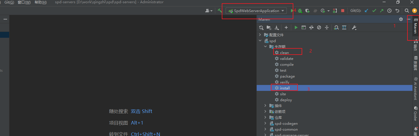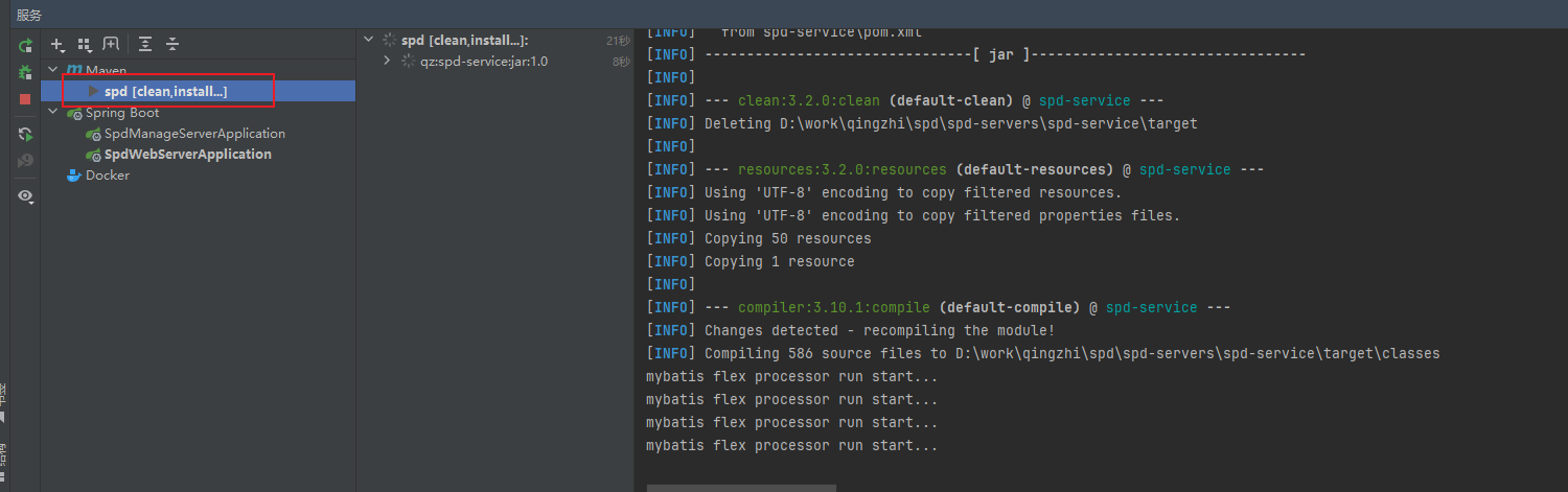每次代码修改以后,因为是多模块项目,所以需要先执行 mvn clean 和 mvn install,再启动应用,操作比较繁琐。