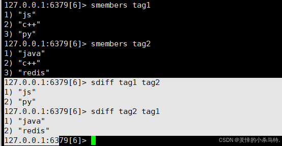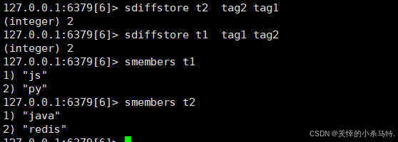 redisSDIFF t1 tag1 tag2 /sdiff t2 tag2 tag1 -