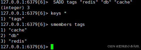 redisSADD tags "redis" "db" "cache" -