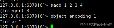 往集合setkey里加4个整数(1、2、3、4),因为元素少(≤512)且全是整数,所以用object encoding setkey查存储方式,结果是"intset"。