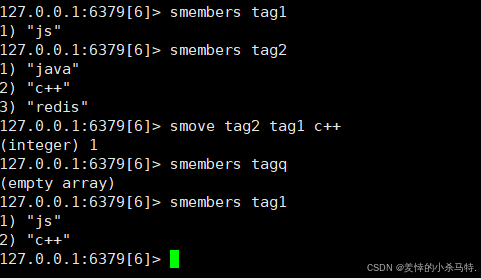 redisSMOVE tag2 tag1 c++ -