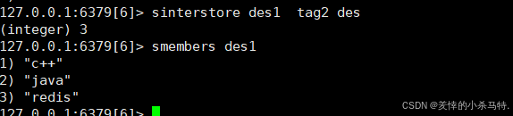 redissinterstore des1 tag2 des -