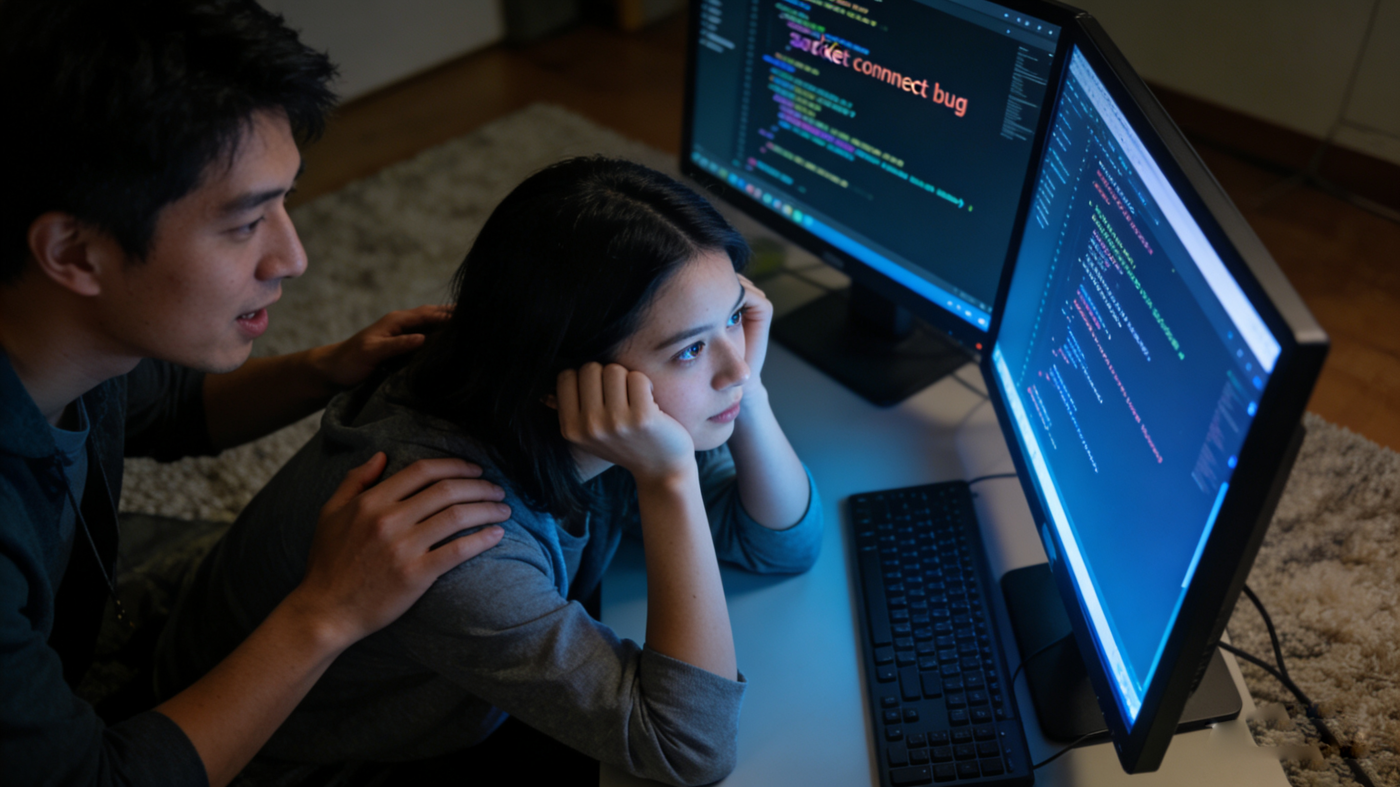 他们打开笔记本,继续pair programming。李磊敲下Node.js后端代码,艾丽负责Vue前端。经过多次重构,代码已从基础认证演变为安全、实时的浪漫消息系统: