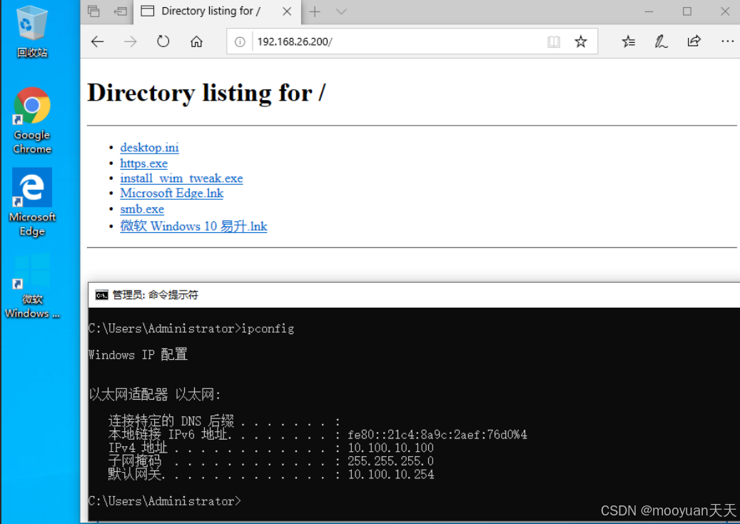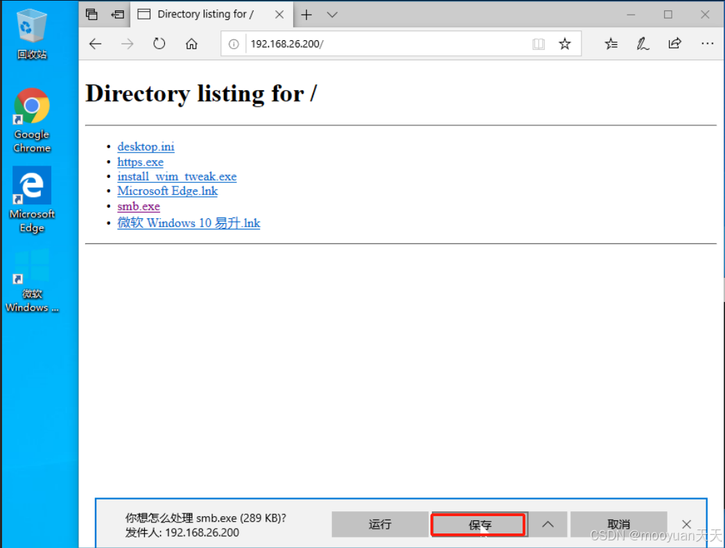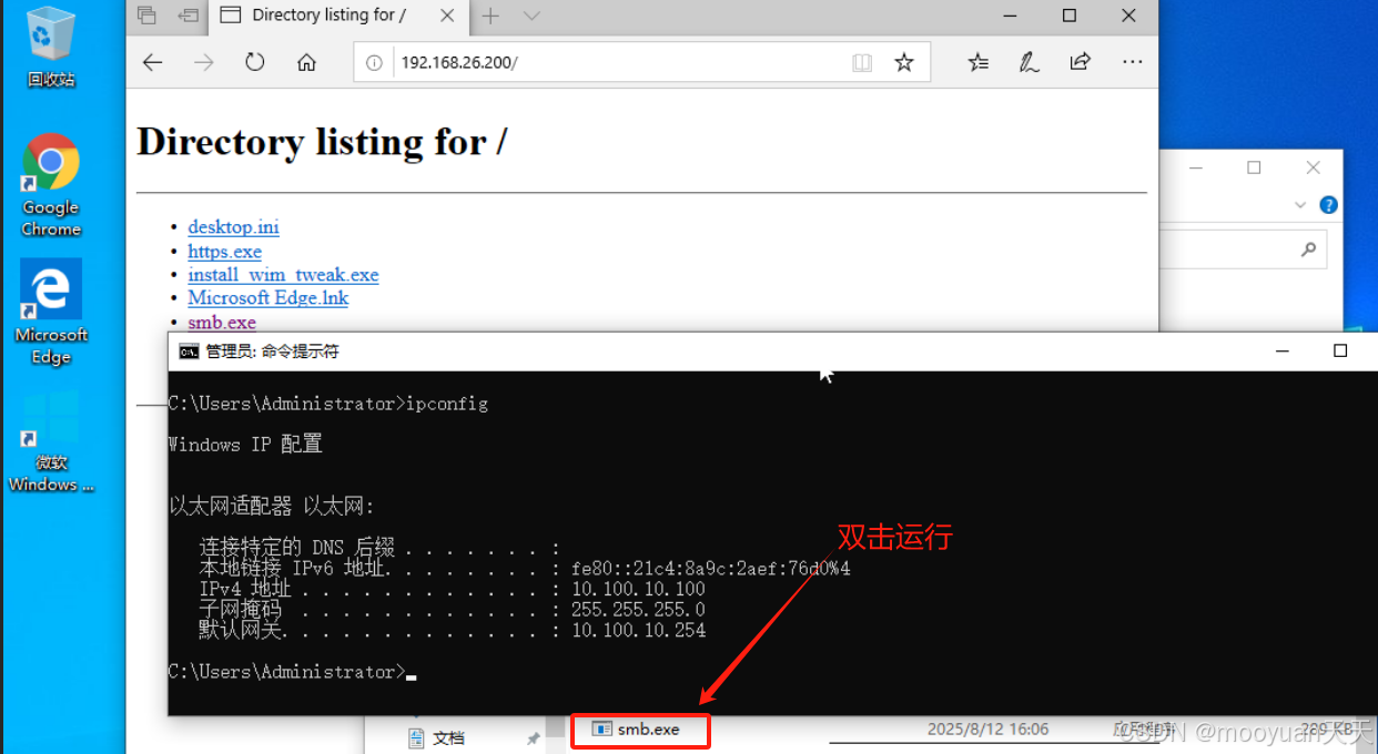 在目标机10.100.10.100中通过web端访问跳板机192.168.26.200,下载smb.exe,如下图所示。