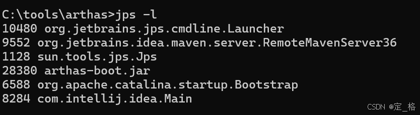 - 启动本地项目,并使用jps -l查看相关进程,并找到启动的进程号
