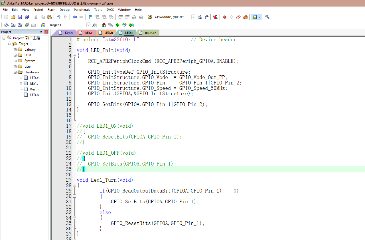 LED状态翻转( Led1_Turn 函数)