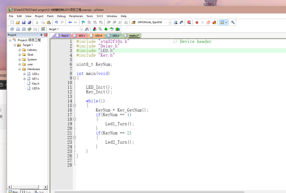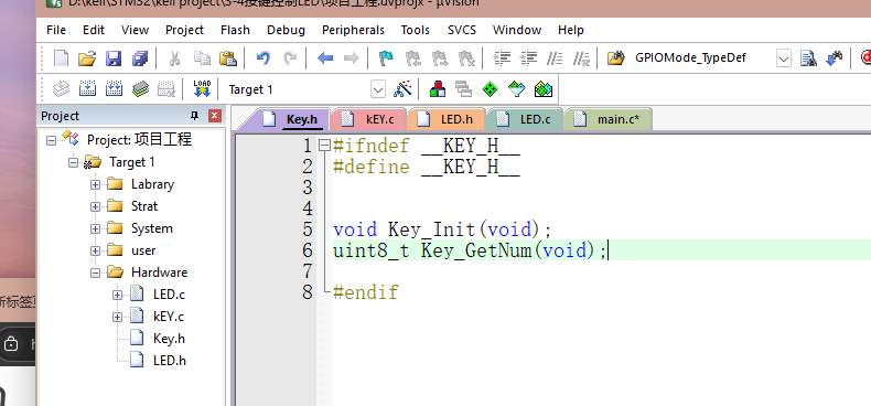 定义 KeyNum 变量存储按键编号(默认0表示无按键)。