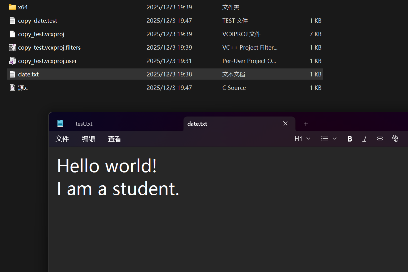 if ((p1 = fopen("date.txt", "r")) == NULL)//打开被拷贝的文件