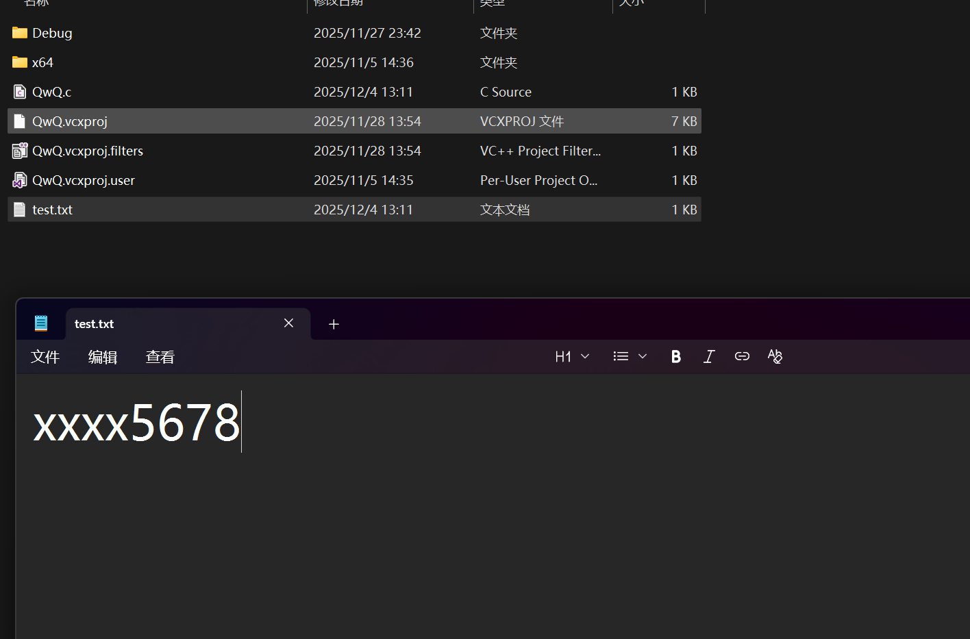 显然,在rewind的作用下,文件的内容光标先返回到了文件的起始位置,然后再输出"xxxx"数据