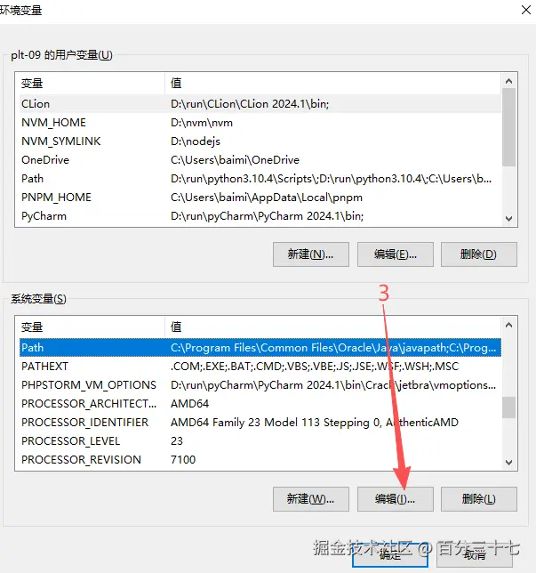 打开环境变量,找到path,点击编辑,把刚才复制好的路径粘贴到新建环境变量输入框里。